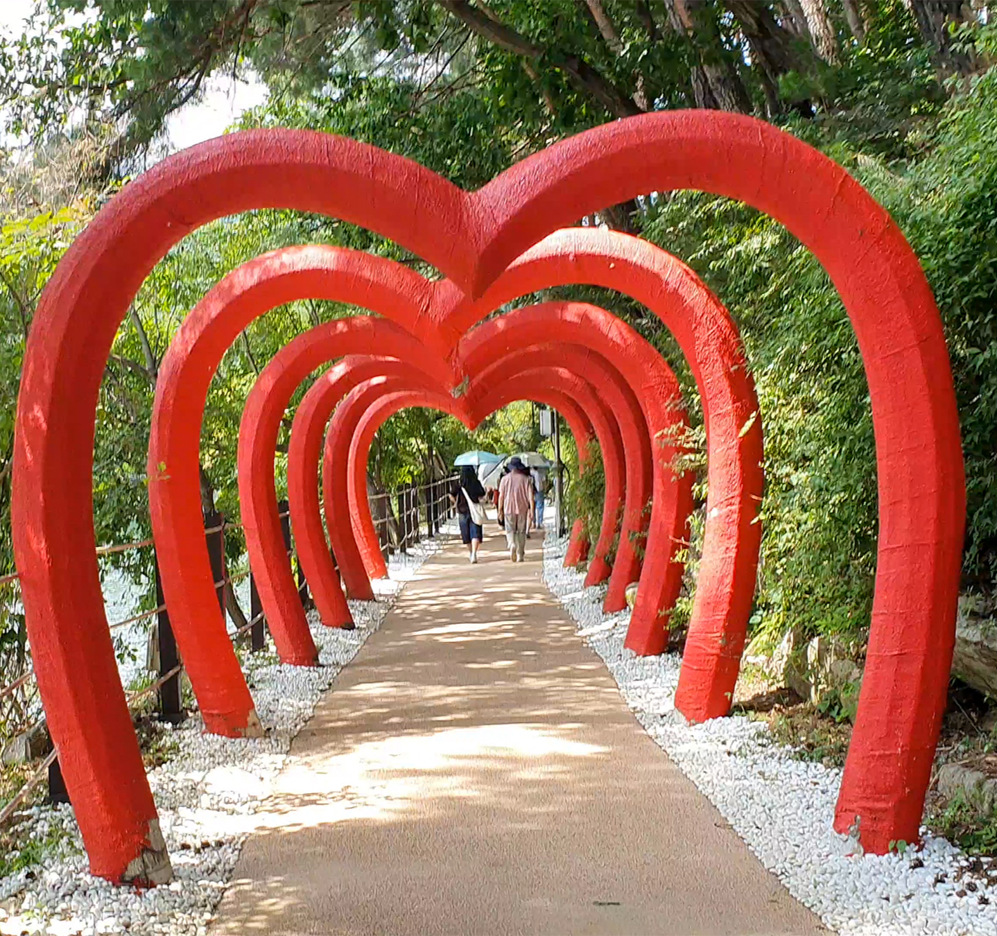 빨간색 하트 터널이 인증샷 찍기 좋습니다.